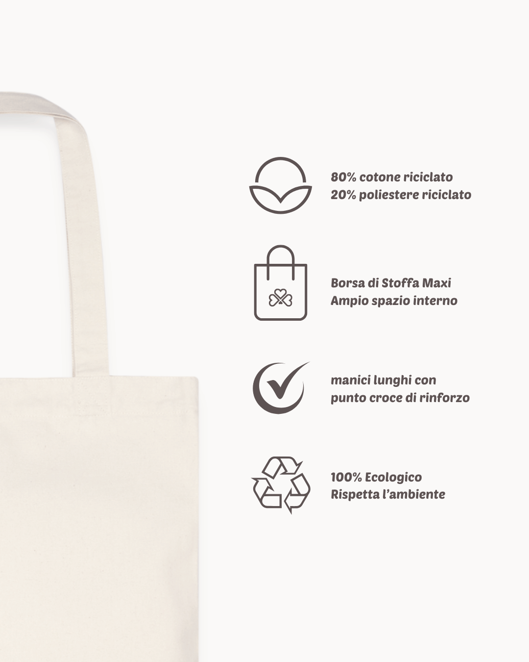 Composizione: 80% cotone riciclato e 20% poliestere riciclato, Trama robusta: 300 g/mq