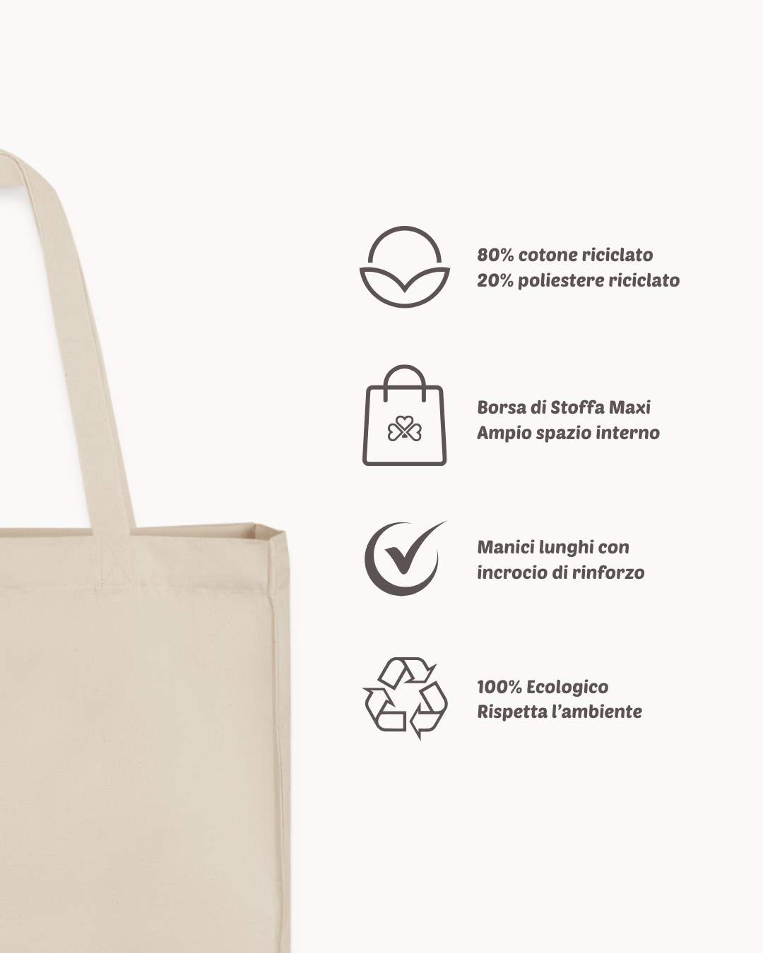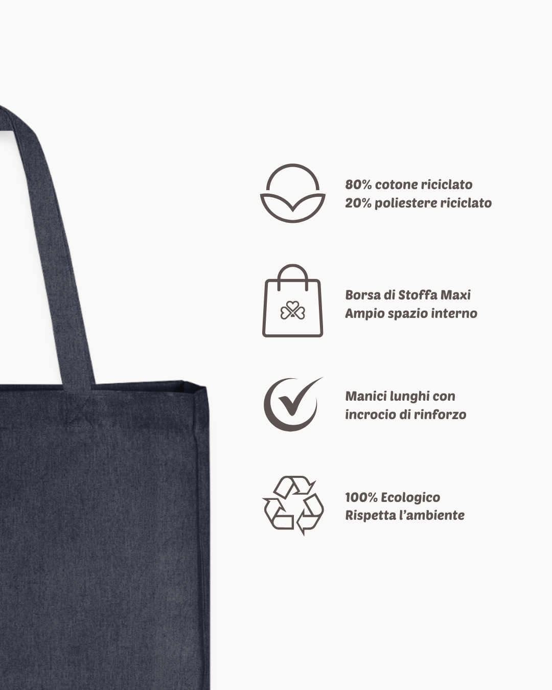 Composizione: 80% cotone riciclato e 20% poliestere riciclato, Trama robusta: 300 g/mq